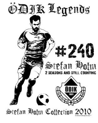 Stefan Holm Collection 2010. Ta nu tillfället i akt och köp en t-shirt i Stefan Holms egen klädkollektion. Klädkollektionen har tagits fram i samarbete mellan Östra Deje IK och Stefan Holm under våren 2010. Kollektionen kommer med fem olika motiv på nya och gamla "ÖDIK-legender", kollektionen är en limited edition och endast tryckt i 150 exemplar, fördelat på fem olika motiv. Alla fem motiven finns i storlekar från 140 - XXL. Och kommer att finnas till försäljning under alla större evenemang och matcher på Tallmovallen. Det går även att beställa via vår hemsida, www.odik.se, eller direkt från vårt kansli på odik@bahnhof.se Vid övriga frågor kontakta vårt kansli vardagar mellan 08:00-16:00 på 0552-220 27 För att titta på alla motiv i Stefan Holm Collection 2010 klicka på länken: Stefan Holm Collection 2010. Eller gå direkt till vårt bildarkiv här på laget.se Alla motiven finns finns till försäljning för 150 SEK/st. (plus eventuell fraktkostnad).