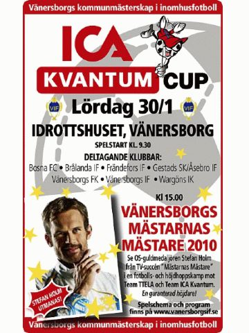 Medan krutröken efter Rocko Cup har lagt sig har ÖDIK tränat vidare och kan nu ställa in siktet på två nya spännande utmaningar, varav den första är av det mer ovanliga slaget. Den 30 januari kommer ÖDIK att delta i Mästarnas mästare i Vänersborg. IFK Vänersborg arrangerar denna dag ICA Kvantum Cup som också fungerar som kommunmästerskap i futsal I pausen mellan gruppspel och slutspel kämpar vårt grönvita ÖDIK mot två handplockade utmanarlag i futsal - och för vissa utvalda ÖDIK-spelare dessutom i höjdhopp. Det gäller bara att se till att komma ihåg att bollen ska under ribban medan kroppen ska över densamma! Mer information om utmaningen i Vänersborg finns här. Den 27 februari väntar sedan EIF Cupen 2010 i Tegnérhallen i Säffle. Efter alldeles för många hedersamma förluster i Rocko Cup i Forshaga ska vi se till att bollen studsar vår väg den här gången. Mer info dyker upp här vad det lider. A-lag Herrar 21 jan 2010 0kommentarer